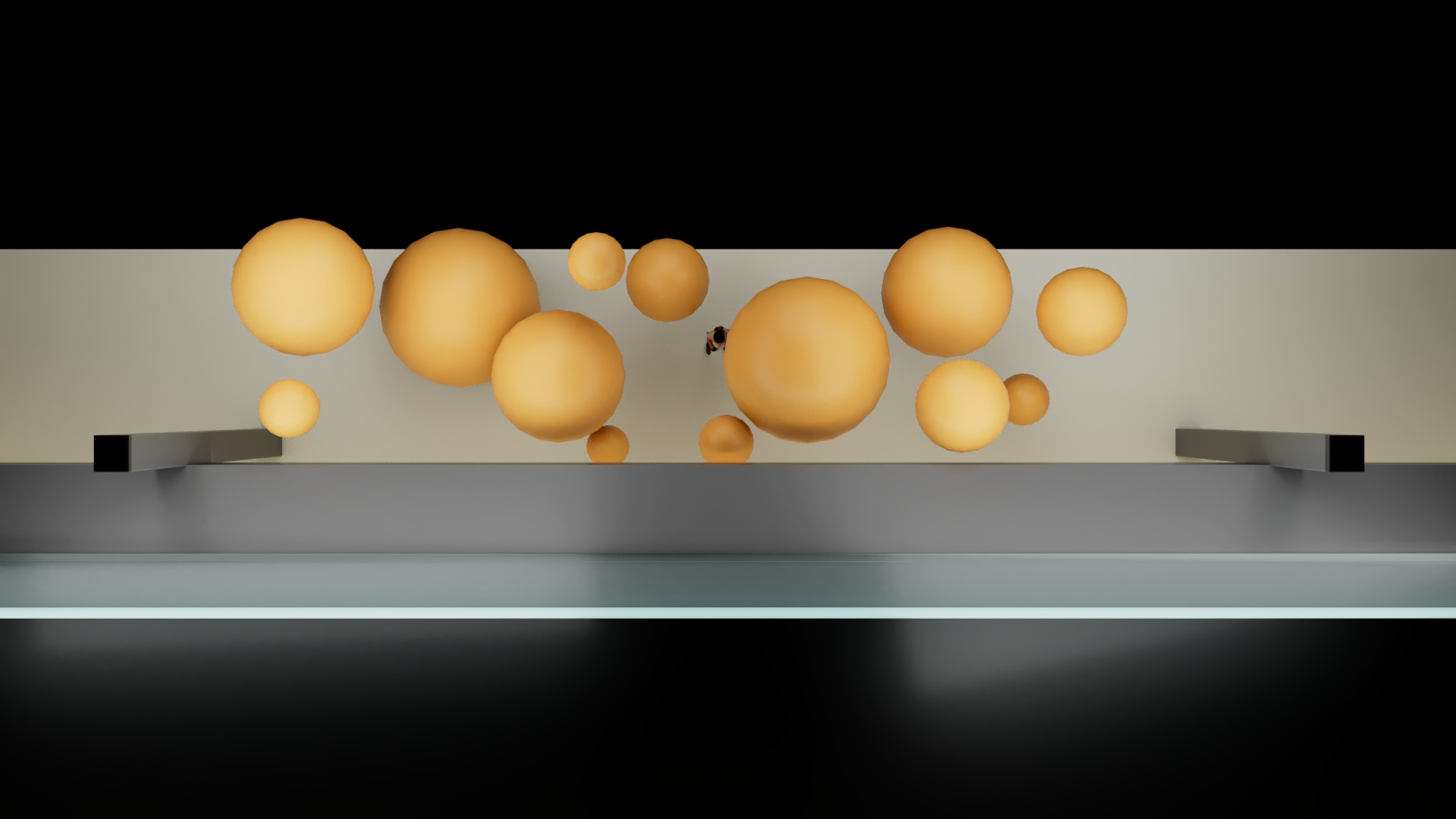 In order to correctly suspend and place each balloon in a space spanning over 40 feet wide, renderings and to-scale measurements were required before the install. The smallest balloon measured 30 inches in diameter while the largest balloon measured 8 feet in diamater.